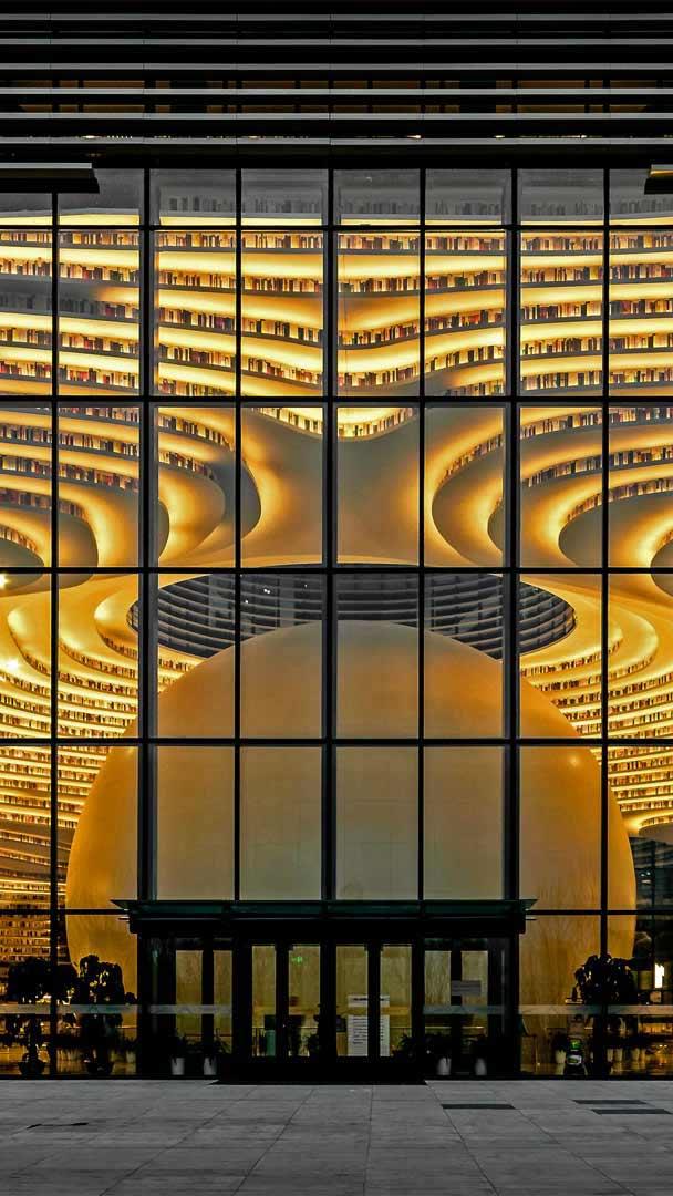 World Book Day takes us to the Tianjin Binhai New Area Library in Tianjin, China. Nicknamed "The Eye," this immense, stunning facility was completed in 2017 as the focal point of the Binhai Cultural Center. Designed by Dutch design firm MVRDV in collaboration with local architects, the library"s floor-to-ceiling bookshelves appear well stocked with books, but most of them are actually printed images. The real books are stored in traditional rooms with normal shelves. Still, it looks super cool.