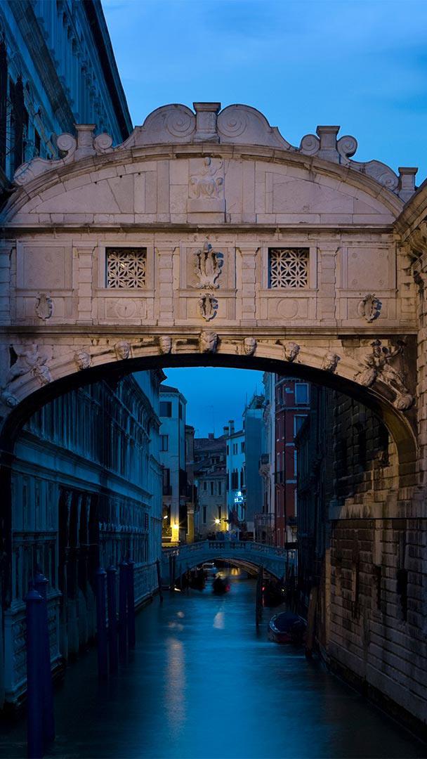 Beneath Venice"s Ponte dei Sospiri (Bridge of Sighs) is a popular place to kiss your beloved as a gondolier guides you through the city"s canals. But the sighs that the name refers to aren"t from staring into your darling"s eyes. The enclosed bridge, completed in 1600, connects the Prigioni Nuove (New Prison) to the interrogation rooms in the Doge"s Palace, and it is said that a prisoner"s last look at beautiful Venice would be from that bridge. And that"s reason enough to sigh indeed.