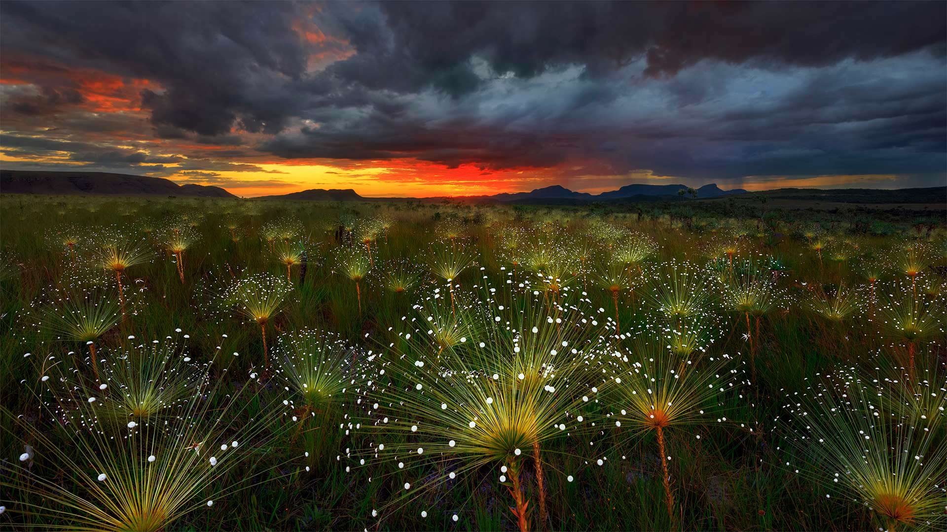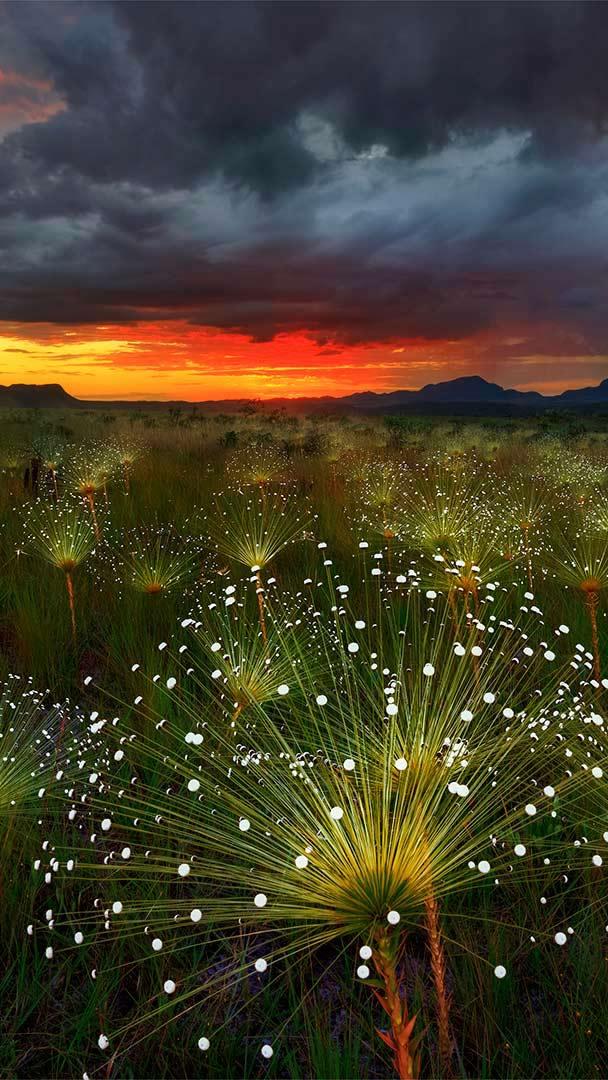 If you’re looking for a piece of paradise that’s off the beaten path, consider Chapada dos Veadeiros National Park, a destination in the Cerrado, a vast tropical savannah in central Brazil. Located on a towering plateau that’s estimated to be 1.8 billion years old, it’s home to many rare and beautiful species, including these delicate flowers, paepalanthus. Waterfalls are plentiful here. Ranging from 250 to nearly 400 feet tall, they cascade down among some of the oldest rock formations on the planet. Quartz crystals dot the landscape, and their reflections reportedly make the region shine when viewed from space.